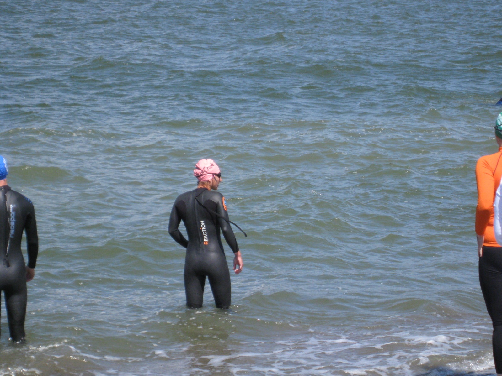 On the start line, the waves were big, choppy, and coming from every direction. The big yellow triangle bouys were moving all over the place. Gary yelled go and we were off, I tried to stay calm and just breathe nice and slowly. I started on the edge of the crowd, pretty happy with my choice, and then it all went downhill… I was hyperventilating, coughing, panicking, and then…..breaststroking (i never breaststroke, especially in a race). I was trying to do everything in my power to calm myself down, think positively, and get through the 2 loop swim course. About half way through the first loop after lots and lots of people passed me I definitely was planning my escape route. I didn’t think my body was recovered and able to complete the race. I was hooped. I eventually made it to the beach after the first lap, flipped up my goggles, WALKED (also a never for me in a race) around the marker on the beach and as I was deciding how to end my suffering, I saw Andrea standing on the edge of the beach, yelling GO LINA! At that moment I knew I was getting back in the water for the second lap. THANK YOU for being there Andrea, I am so glad I didn’t quit. So I managed to just get through the swim, in last place of solo women. It was a little embarrassing and tough getting out of the water and running down the log to the kayak but when I saw all the support I had I started getting fired up again. I wasn’t too far behind the others.